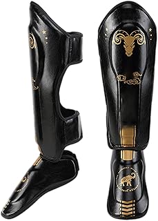 RDX Schienbeinschoner Leder Boxen Schienbeinschutz Schienbein Muay Thai Kampfsport Beinschützer Kickboxen Schienbeinschützer , Black/Gold, L