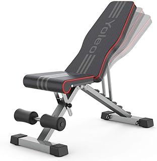 YOLEO verstellbare Hantelbank Multifunktion Trainingsbank Fitnessbank Flachbank, verdickte Fußschaum, verstellbar 6Fach Rückenlehne/4 Fach Sitz, bis 150kg belastbar, Sit Up Bank für Ganzkörpertraining