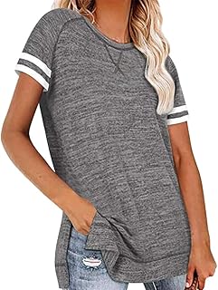 Damen Baseball T-Shirt Langarm T-Shirt mit rundem Hals Lose Bluse T-Shirt Frauen Kurzarm T-Shirts Damen Pullover Baseball Tops Rundhalsstreifen Gestreifter Pullover Damen Kurzarm T-Shirt