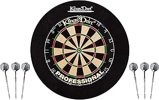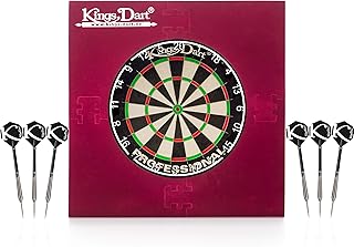 Kings Dart Dart Komplettset Profi | Dart-Set: Sisal-Dartscheibe für Steeldart u. Softdart, 6X Steel-Dartpfeile, Dart-Surround Auffangring | Soft- u. Steeldart | Markenqualität