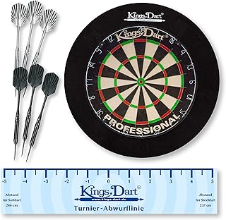 Kings Dart Dart-Set Profi | Hochwertige Sisal Steel-Dartscheibe + Dart-Surround | superdünne Spider-Feldbegrenzung | Tunierdartscheibe nach WDF Standard| Markenqualität