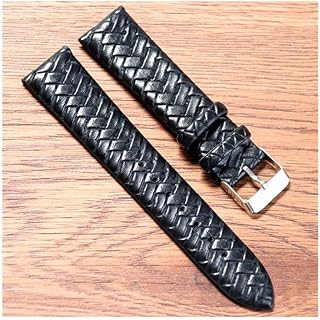 ZAJ 20 mm Webstoff Muster Blau-Schwarz-weich-Uhrenarmband Ersatz Geflochtene Uhrenarmband aus Leder mit Edelstahl-Wölbung (Band Color : Black Silver Buckle, Band Width : 20mm)
