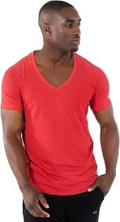 Herren T-Shirt Tiefer Rundkragen Kurzarm-Shirt Slim Fit Männer T-Shirt lang Rundhals Ausschnitt Fashion Shirt für Herren