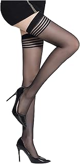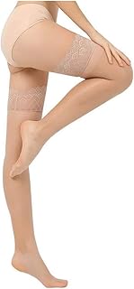 Damen Strümpfe, Strümpfe mit Spitze, hoher Oberschenkel, Strumpfhose, Silikon-Top, 15 Denier, Overknee-Socken