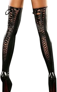 Damen Halterlose Strümpfe FORH Frauen Sexy PU-Leder Strümpfe Versuchung Wetlook Lang Socken Overknee Strümpfe Stretch Stocking Optik Oberschenkel Reizwäsch (Schwarz A)