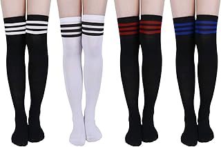 3 Pack Damen Kniestrümpfe - Overknee Strümpfe Streifen Lange Socken Retro Knitting Strümpfe Mädchen Cheerleader Sportsocken Baumwollstrümpfe