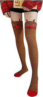 Weihnachtssocken Damen Overknee Strümpfe Lange Socken Overknee Socken Korallenvlies hohe Strümpfe Weihnachten Bodensocken Wintersocken Weihnachtsmann Hüttensocken Thermosocken