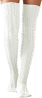 HEMO 1 Paar Damen Overknee Strümpfe Stricken High Prime, Damen Mädchen Winter Zopfstrick über Kniestrümpfe, Damen Oberschenkel Hohe Socken Overknee Zopfstrick Stiefelsocken Beinlinge Winter