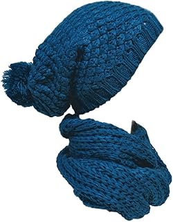 2er Set Grobstrick Mütze Schal Strickmütze Ballon Wintermütze Ballonmütze Long Beanie (Petrol)