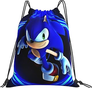 Sonic Rucksack mit Kordelzug, Motiv: Igel, Rucksack, Schultertasche, Turnbeutel, lässig, Laufen, Tagesrucksack für Teenager, Männer und Frauen