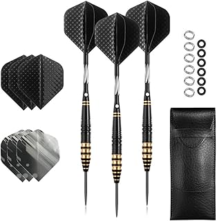 Haosell 3 Stück Profi Steel Dartpfeile schwarz Steeldarts dartscheibe 23 g Steel Tip Dartpfeile Set Professionelle Darts mit pu Case Schwarze mit 9 Flights,6 Anti-Lose Gummiringe 6 Spring Rings