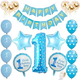 Juland 1. Geburtstag Dekorationen für Jungen Aufpumpen Helium Folienballons Dekoration Blau Happy Birthday Banner Baby Party Luftballons Alles Gute zum Geburtstag Ballons Konfetti Latex Luftballons