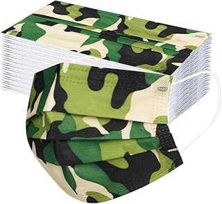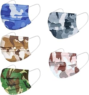 50 Stück Mundschutz Kinder Einweg 3-lagig mit Motiv Bunt Mund Nasenschutz Cartoon Druck Tücher Atmungsaktiv Mund-Tuch Bandana Halstuch Schals für Jungen und Mädchen (5 Tarnmuster)