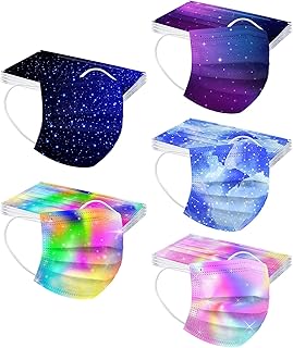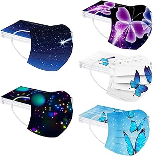 MUMEOMU 50 Stück Erwachsene Mundschutz Einweg 3-lagig mit Motiv Bunt Mund Nasenschutz Bunt Mund Nasenschutz Druck Tücher Atmungsaktiv Mund-Tuch Bandana Halstuch Schals Mund-Nasen Bedeckung Schals